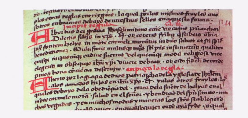 St. Alberts europeiske erfaringsbakgrunn er merkbar. Man kan kjenne igjen elementer fra mange kilder: Fra kirkefedrene, samtidens teologer og tidligere ordensregler. Sitater fra Bibelen opptar stor plass. Utgangspunktet var imidlertid kommuniteten som allerede eksisterte ved Elia-kilden. Brødrenes liv var preget av de idealer som profeten og jomfruen hadde gjort til sine og innrettet seg etter, hver på sin måte. Det var i første rekke enkelhet, åpenhet overfor Gud og nærhet til andre mennesker og deres problemer.